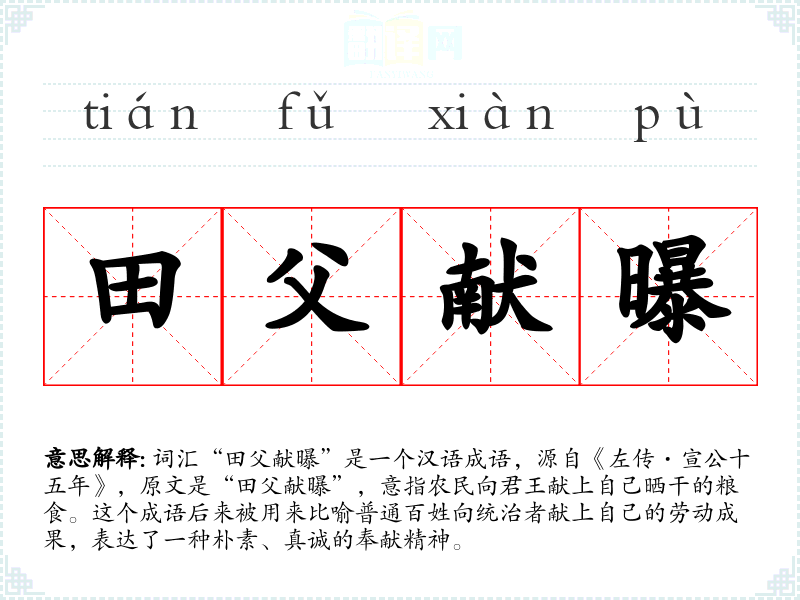 - 字面意思:田父(农民)献上(献)曝晒(曝)的粮食。