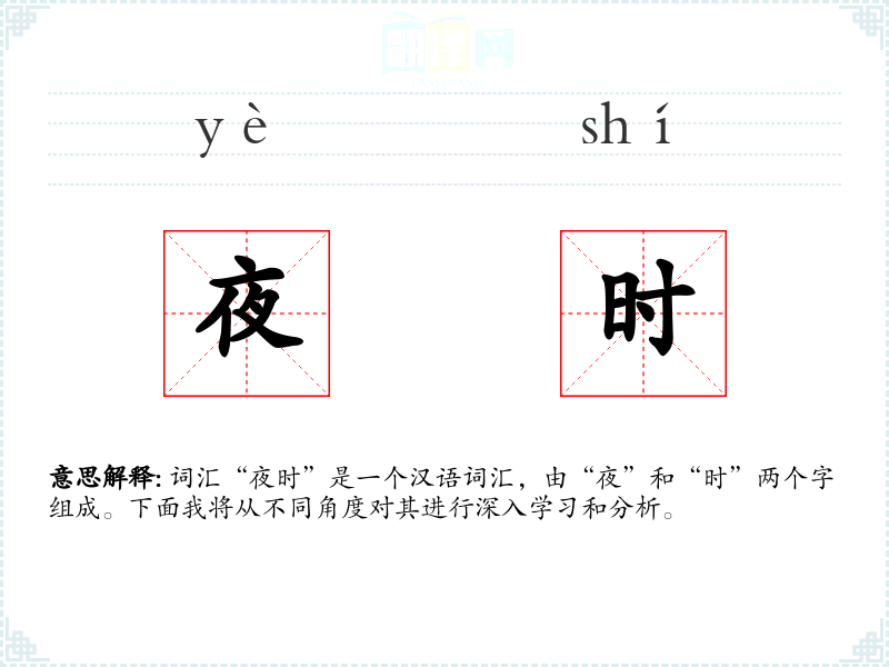 词汇“夜时”是一个汉语词汇,由“夜”和“时”两个字组成。下面我将从不同角度对其进行深入学*和分析。