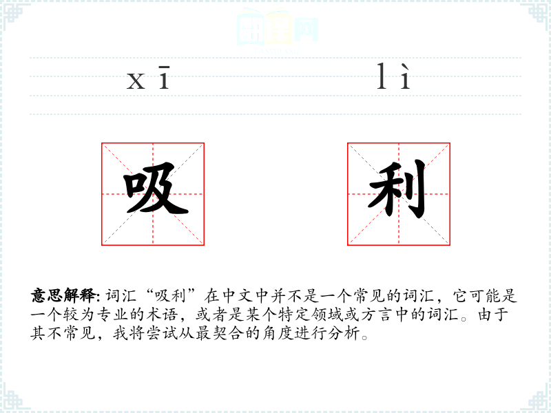 词汇“吸利”在中文中并不是一个常见的词汇,它可能是一个较为专业的术语,或者是某个特定领域或方言中的词汇。由于其不常见,我将尝试从最契合的角度进行分析。
