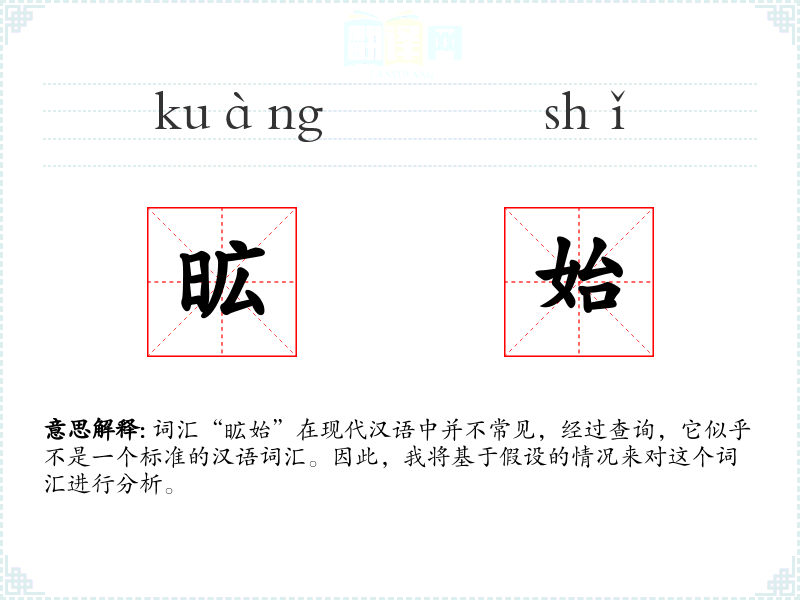 尽管“昿始”不是一个常用词汇,但它展示了语言的丰富性和创造性。在语言学*和表达中,了解和探索这样的词汇可以帮助我们更好地理解语言的多样性和深度。