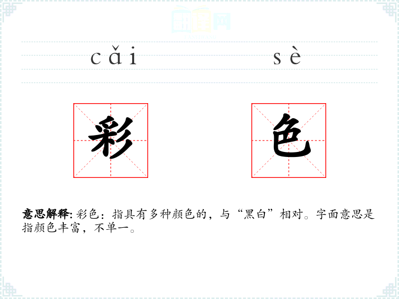 "彩色"的意思解释、彩色是什么意思由翻译网汉语词典查词提供。