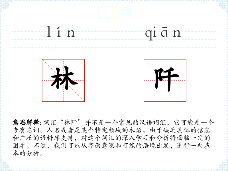 由于“林阡”不是一个常见词汇,对其的理解和分析存在一定的局限性。如果它是一个专有名词,那么它的意义和使用将非常特定和有限。在语言学和表达中,了解和掌握常见词汇更为重要,而特定词汇的学则需要结合具体语境和背景。