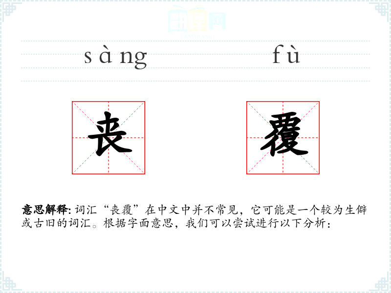 词汇“丧覆”在中文中并不常见,它可能是一个较为生僻或古旧的词汇。根据字面意思,我们可以尝试进行以下分析: