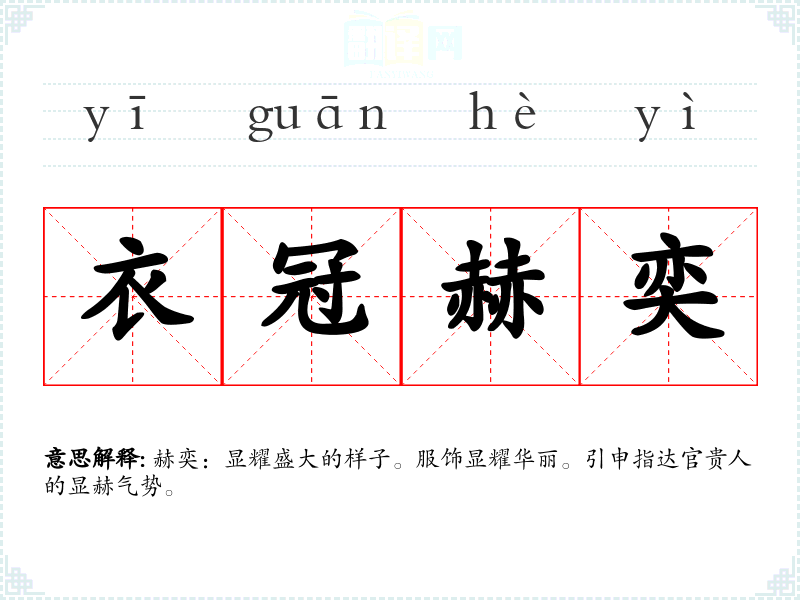 赫奕:显耀盛大的样子。服饰显耀华丽。引申指