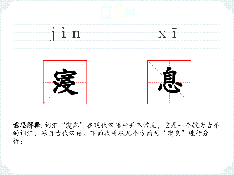 词汇“寖息”在现代汉语中并不常见,它是一个较为古雅的词汇,源自古代汉语。下面我将从几个方面对“寖息”进行分析: