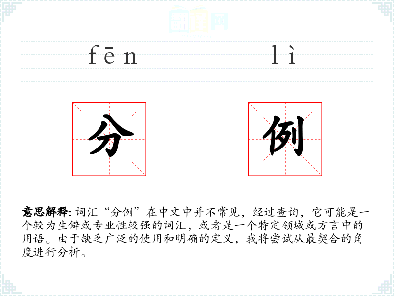 由于“分例”不是一个常用词汇,它在不同语言或文化中的对应词汇可能难以比较。