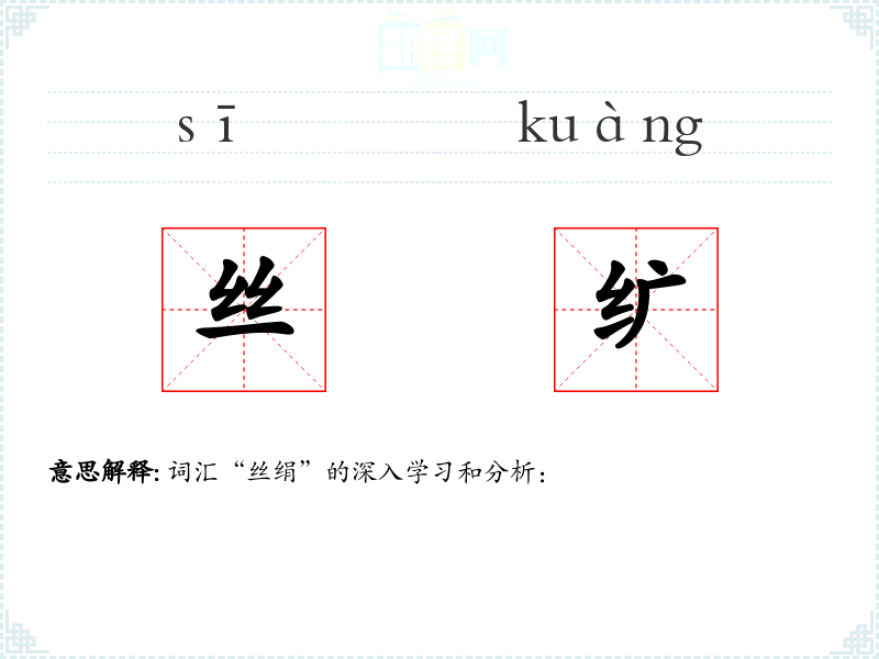 反思与总结: 通过对“丝绢”的深入学,我更加欣赏这种材料的优雅和历史价值。它不仅是一种织物,也是一种文化和艺术的载体。在语言学和表达中,了解和运用这样的词汇可以丰富我的表达方式,增加语言的细腻度和深度。