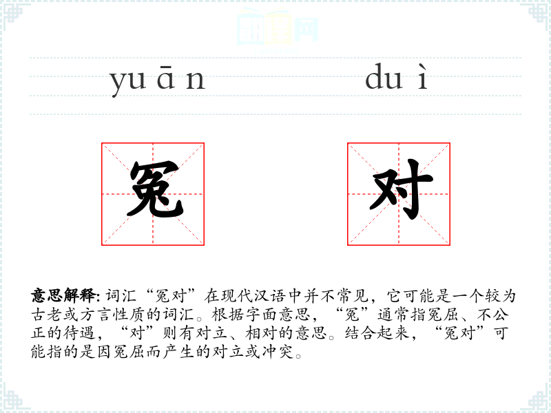 “冤对”的基本含义可能是指因受到不公正待遇或误解而产生的对立状态或冲突。