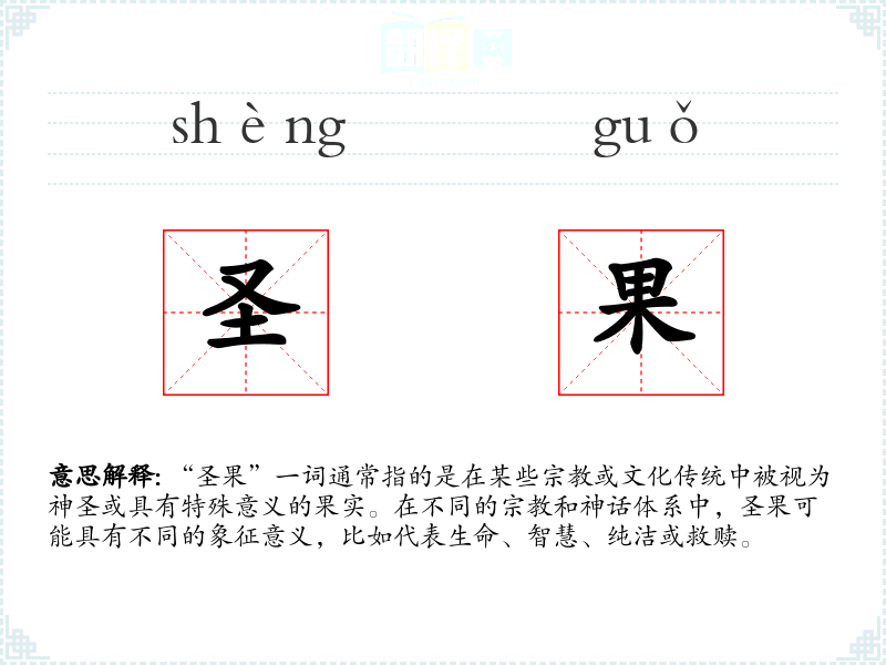 "圣果"的意思解释、圣果是什么意思由翻译网汉语词典查词提供。