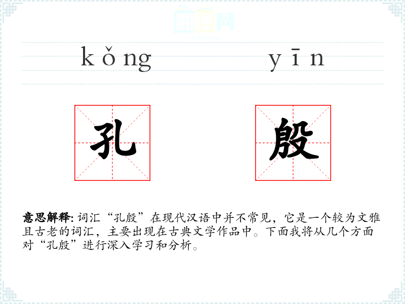 “孔”字在古代汉语中就有“非常”、“极其”的意思,而“殷”字则有“深厚”、“热情”的含义。这两个字组合在一起,形成了“孔殷”这个词汇,其含义在历史演变中保持相对稳定。