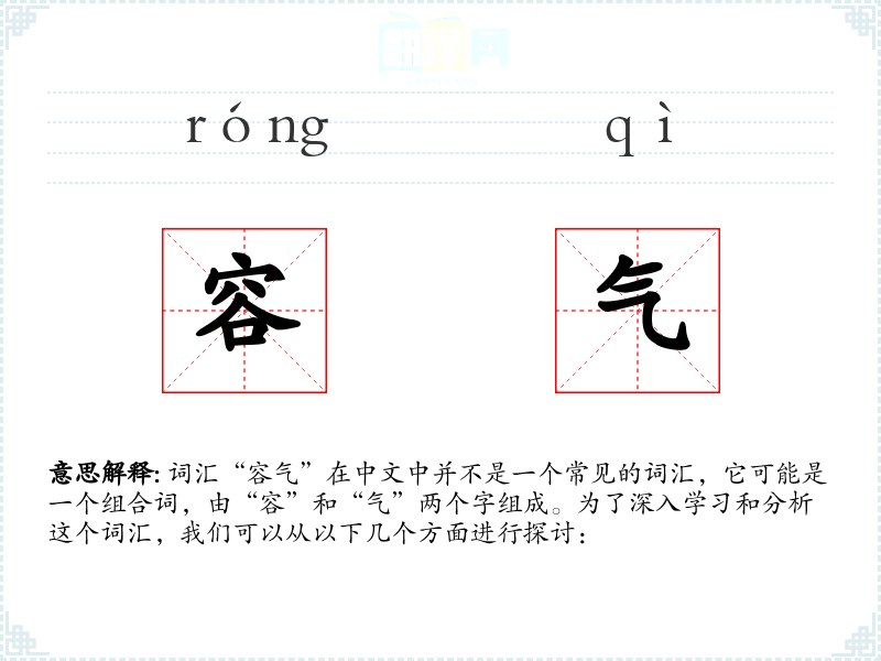 "容气"的意思解释、容气是什么意思由翻译网汉语词典查词提供。