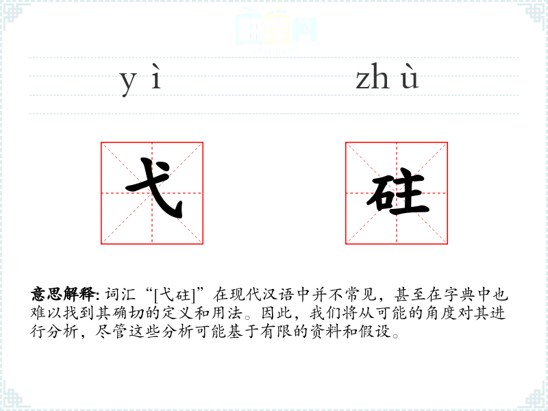 词汇“[弋砫]”在现代汉语中并不常见,甚至在字典中也难以找到其确切的定义和用法。因此,我们将从可能的角度对其进行分析,尽管这些分析可能基于有限的资料和假设。