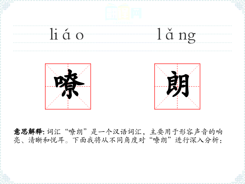 词汇“嘹朗”是一个汉语词汇,主要用于形容声音的响亮、清晰和悦耳。下面我将从不同角度对“嘹朗”进行深入分析: