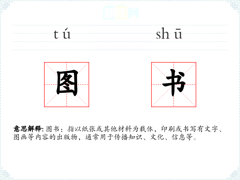 - 反义词:无(图书本身是一个中性词,没有直接的反义词)