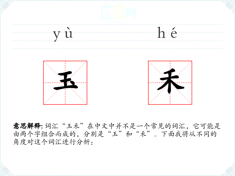 词汇“玉禾”在中文中并不是一个常见的词汇,它可能是由两个字组合而成的,分别是“玉”和“禾”。下面我将从不同的角度对这个词汇进行分析: