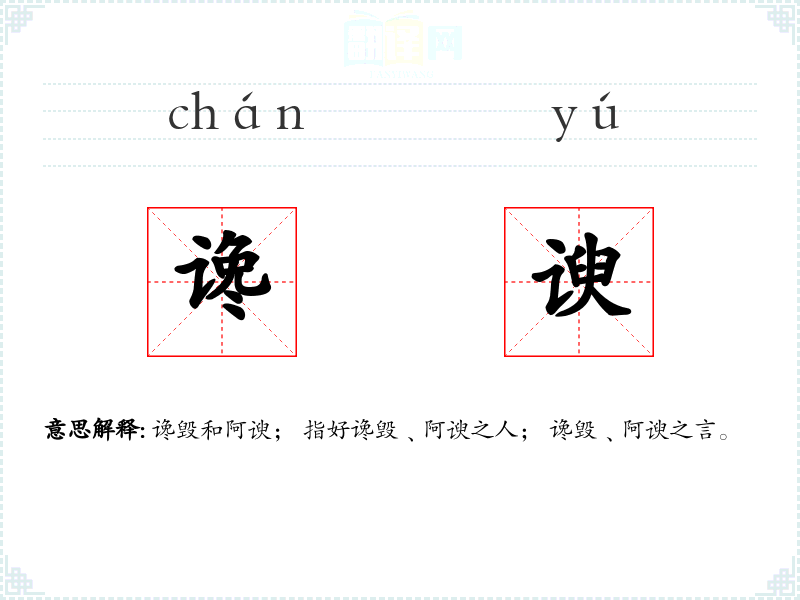 谗毁和阿谀; 指好谗毁﹑阿谀之人; 谗毁﹑阿谀之言。
