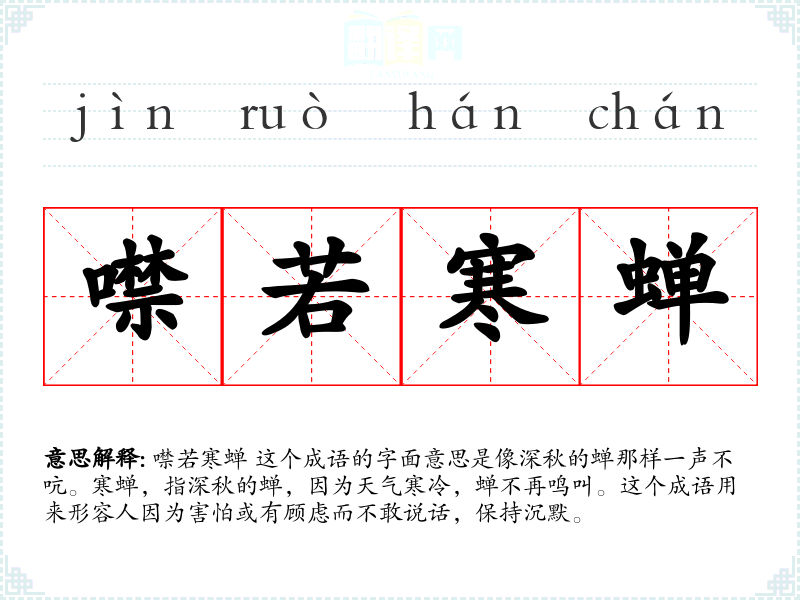 "噤若寒蝉"的意思解释、噤若寒蝉是什么意思由翻译网汉语词典查词提供。