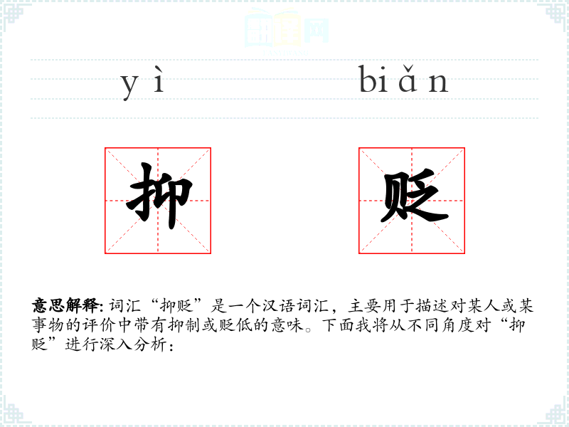 - 专业领域:在学术或专业讨论中,“抑贬”可能用于严谨地分析和评价理论或实践的不足之处。