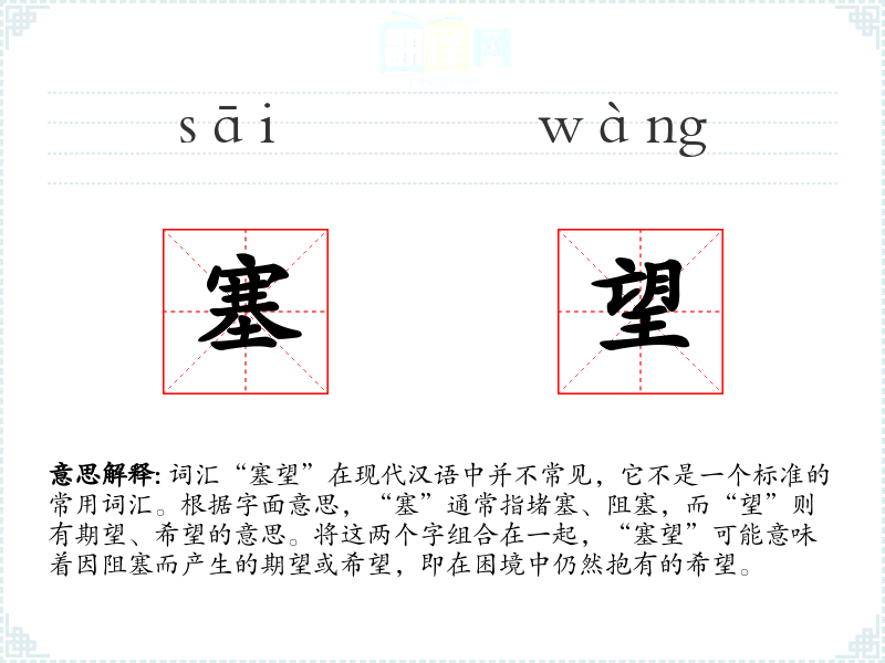 "塞望"的意思解释、塞望是什么意思由翻译网汉语词典查词提供。