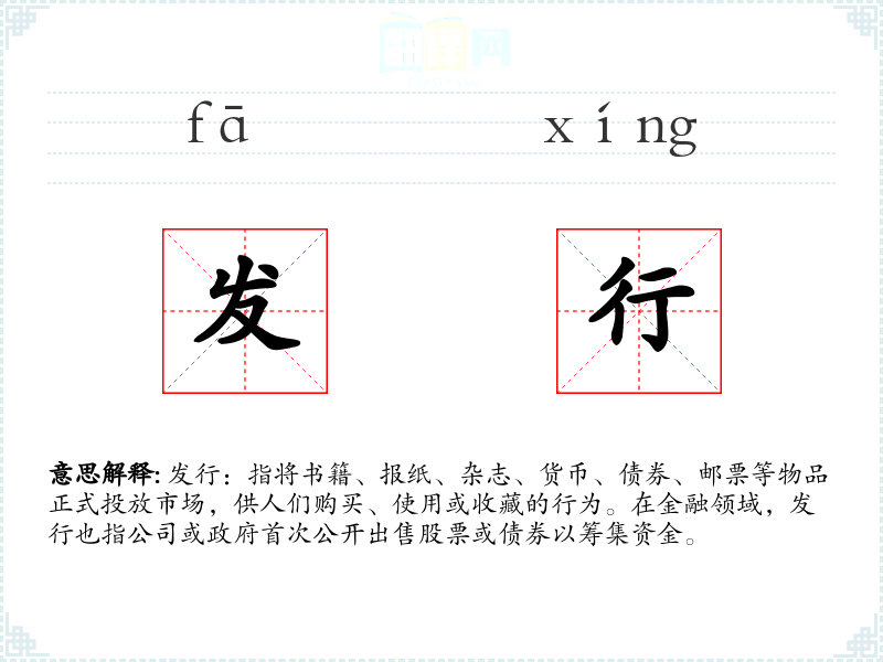 - 专业领域:在金融领域,发行特指股票或债券的首次公开出售,如“公司计划在下个月发行新股。”