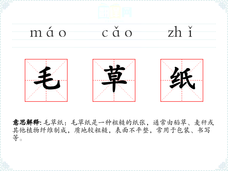 "毛草纸"的意思解释、毛草纸是什么意思由翻译网汉语词典查词提供。