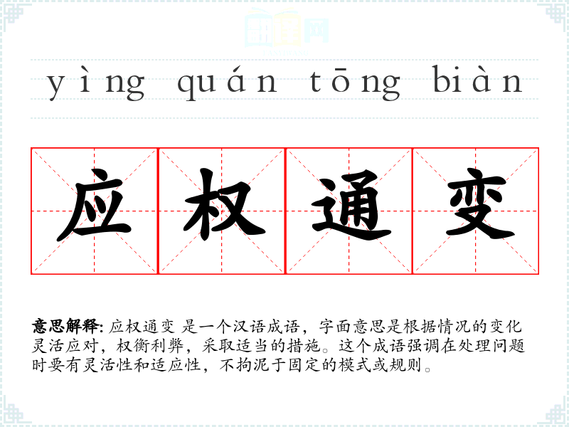 在文化中,应权通变** 被视为一种智慧和能力的体现。在社会变革和快速发展的背景下,这个成语提醒人们要保持灵活性和适应性,以应对不断变化的环境。