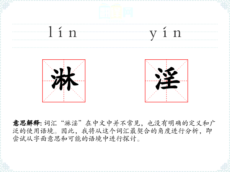 词汇“淋淫”在中文中并不常见,也没有明确的定义和广泛的使用语境。因此,我将从这个词汇最契合的角度进行分析,即尝试从字面意思和可能的语境中进行探讨。