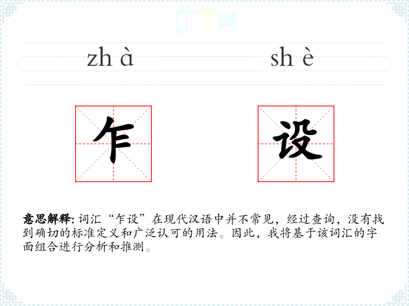 词汇“乍设”在现代汉语中并不常见,经过查询,没有找到确切的标准定义和广泛认可的用法。因此,我将基于该词汇的字面组合进行分析和推测。