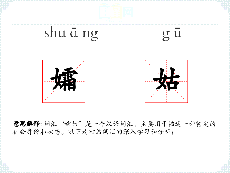 词汇“孀姑”是一个汉语词汇,主要用于描述一种特定的社会身份和状态。以下是对该词汇的深入学*和分析: