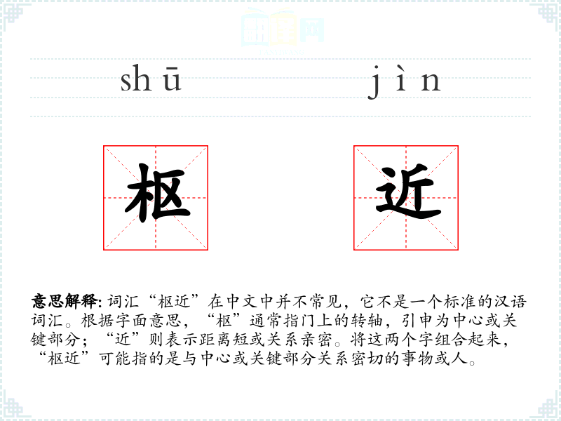 在特定的文化或社会背景中,“枢近”可能被用来强调某个个体或事物的重要性,尤其是在强调等级或层级关系的情境中。