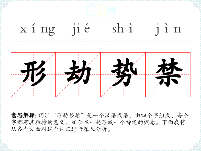 词汇“形劫势禁”是一个汉语成语,由四个字组成,每个字都有其独特的意义,组合在一起形成一个特定的概念。下面我将从各个方面对这个词汇进行深入分析。