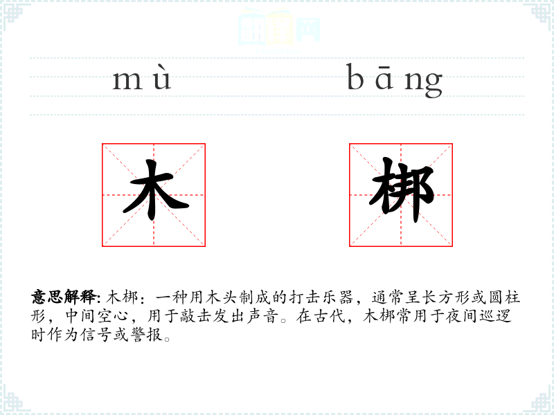 "木梆"的意思解释、木梆是什么意思由翻译网汉语词典查词提供。