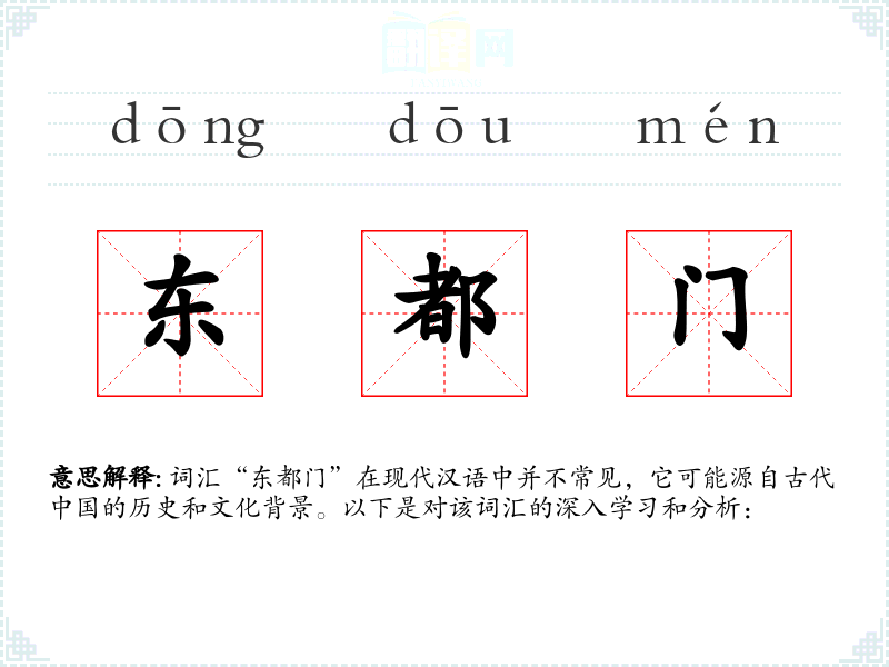 词汇“东都门”在现代汉语中并不常见,它可能源自古代*的历史和文化背景。以下是对该词汇的深入学和分析: