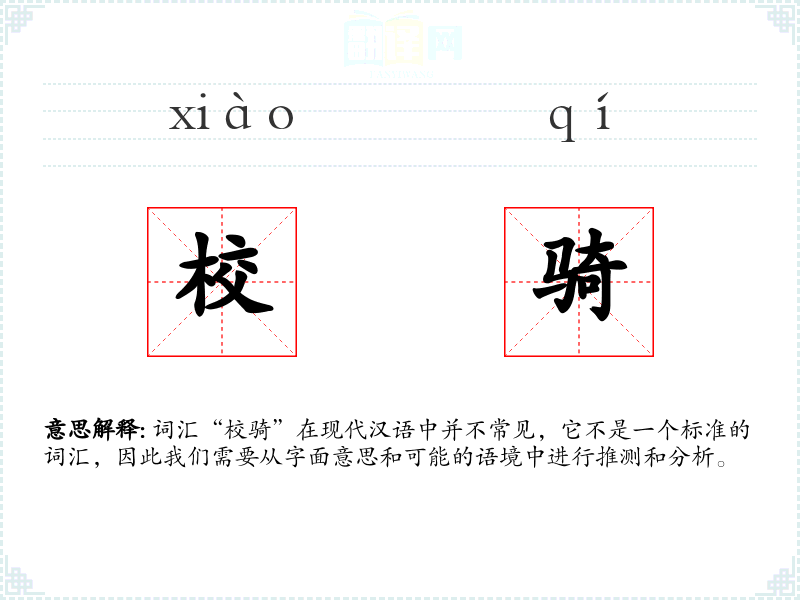 - 反义词:(由于“校骑”不是一个常用词汇,反义词可能不适用)