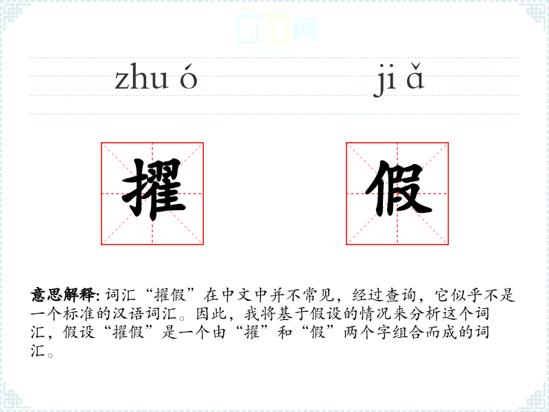 词汇“擢假”在中文中并不常见,经过查询,它似乎不是一个标准的汉语词汇。因此,我将基于假设的情况来分析这个词汇,假设“擢假”是一个由“擢”和“假”两个字组合而成的词汇。