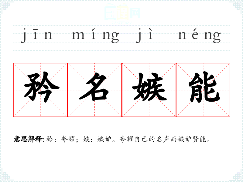 矜:夸耀;嫉:嫉妒。夸耀自己的名声而嫉妒贤能。
