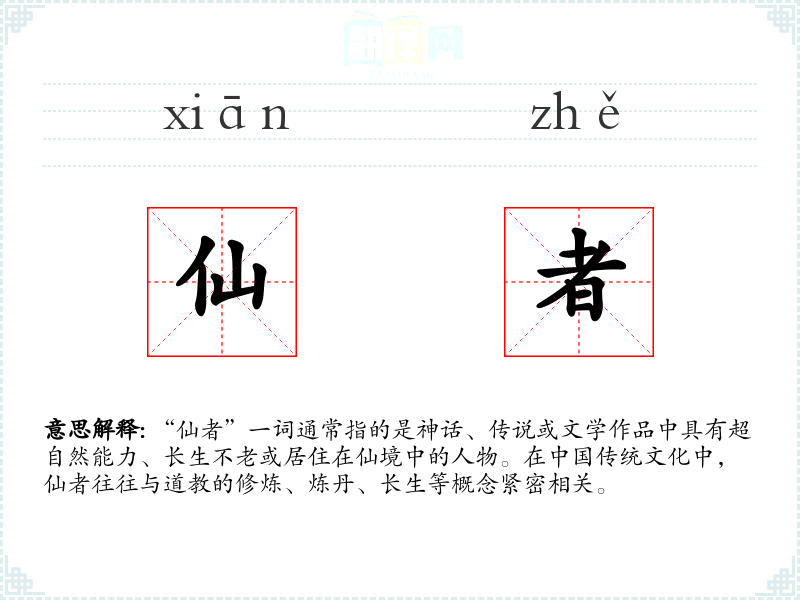 - 反义词:凡人、俗人。这些词汇与“仙者”形成对比,指的是普通的人类,没有超自然能力。