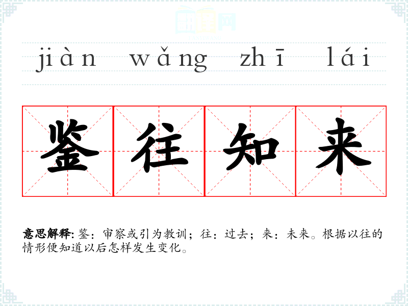 鉴:审察或引为教训;往:过去;来:未来。根据以往的情形便知道以后怎样发生变化。