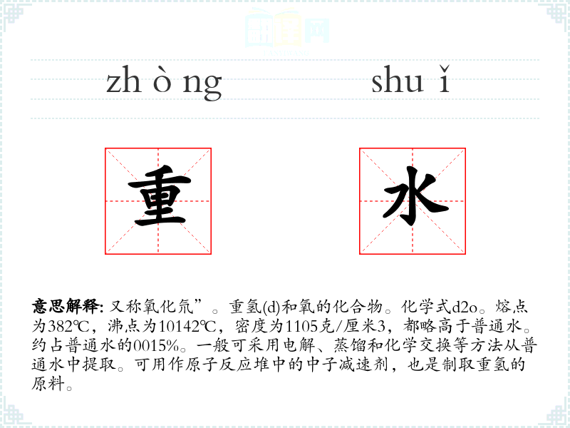 "重水"的意思解释、重水是什么意思由翻译网汉语词典查词提供。