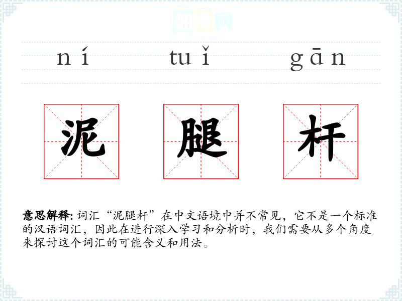 词汇“泥腿杆”在中文语境中并不常见,它不是一个标准的汉语词汇,因此在进行深入学习和分析时,我们需要从多个角度来探讨这个词汇的可能含义和用法。