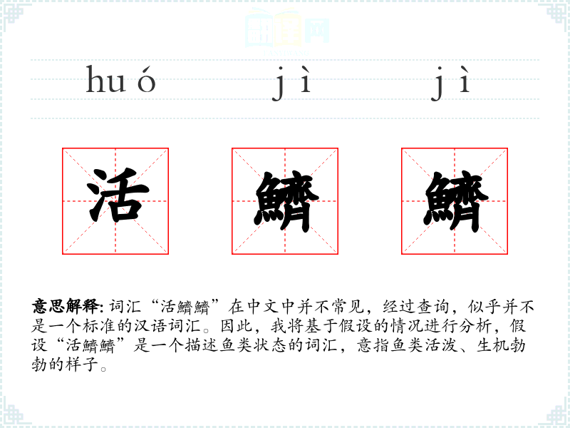词汇“活鱭鱭”在中文中并不常见,经过查询,似乎并不是一个标准的汉语词汇。因此,我将基于假设的情况进行分析,假设“活鱭鱭”是一个描述鱼类状态的词汇,意指鱼类活泼、生机勃勃的样子。