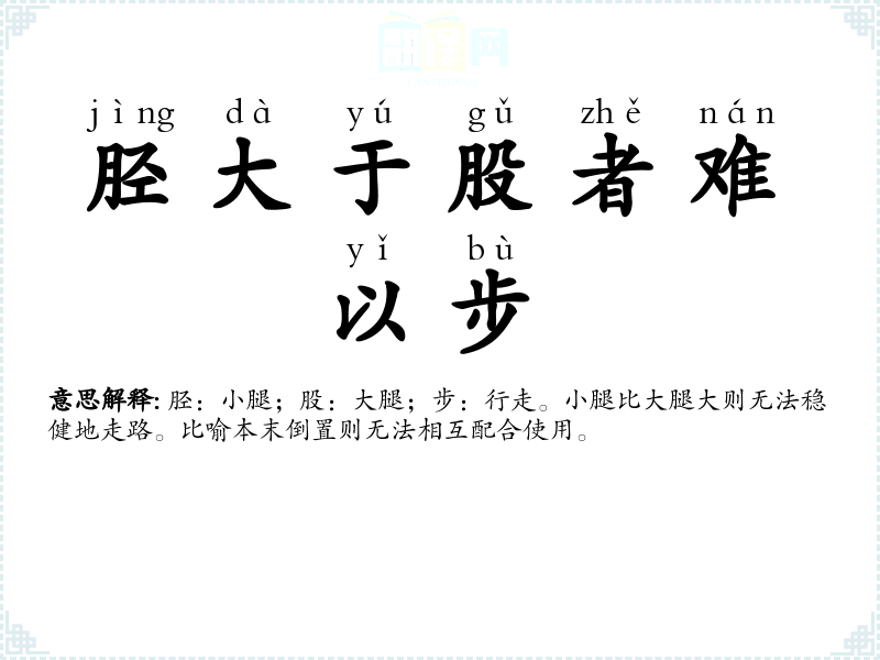 "胫大于股者难以步"的意思解释、胫大于股者难以步是什么意思由翻译网汉语词典查词提供。