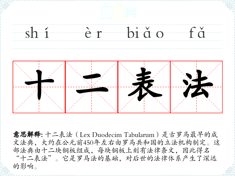 "十二表法"的意思解释、十二表法是什么意思由翻译网汉语词典查词提供。