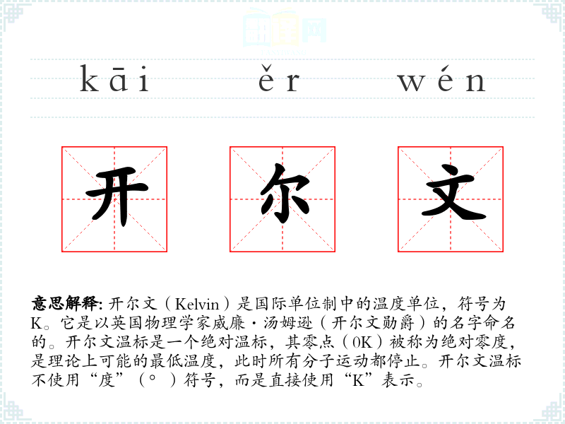 "开尔文"的意思解释、开尔文是什么意思由翻译网汉语词典查词提供。