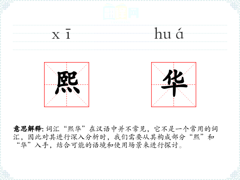 词汇“熙华”在汉语中并不常见,它不是一个常用的词汇,因此对其进行深入分析时,我们需要从其构成部分“熙”和“华”入手,结合可能的语境和使用场景来进行探讨。