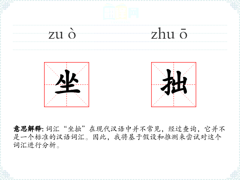 词汇“坐拙”在现代汉语中并不常见,经过查询,它并不是一个标准的汉语词汇。因此,我将基于假设和推测来尝试对这个词汇进行分析。