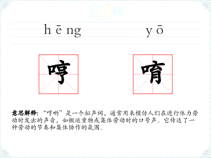 “哼哟”作为一个拟声词,其词源较为简单,主要是模仿人类劳动时的声音。随着时间的推移,它在语言中的使用逐渐固定,成为描述劳动场景的常用词汇。