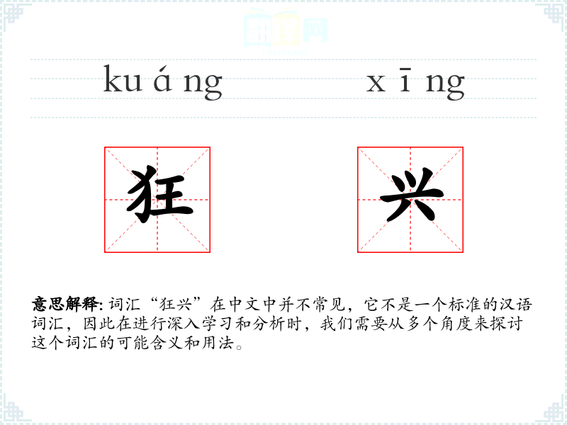 词汇“狂兴”在中文中并不常见,它不是一个标准的汉语词汇,因此在进行深入学*和分析时,我们需要从多个角度来探讨这个词汇的可能含义和用法。
