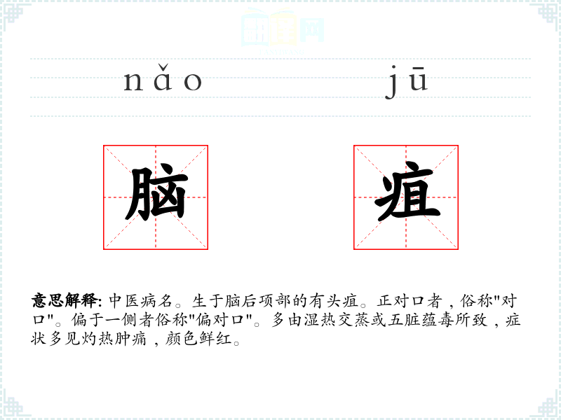 脑疽的分字解释