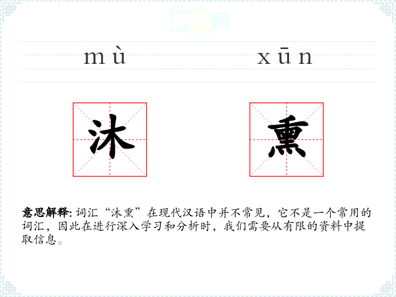 由于“沐熏”不是一个常用词汇,它在文学作品中可能出现,用以表达某种深刻的熏陶或教育意义。在口语和专业领域中,这个词汇可能不太常见。